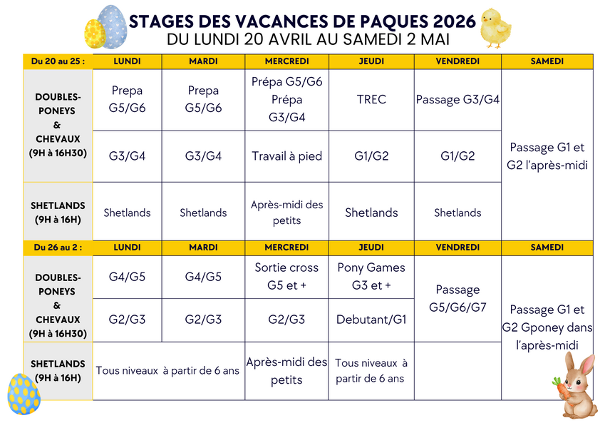 Les reprises et stages pour les vacances de Paques sont disponible sur Kavalog :
